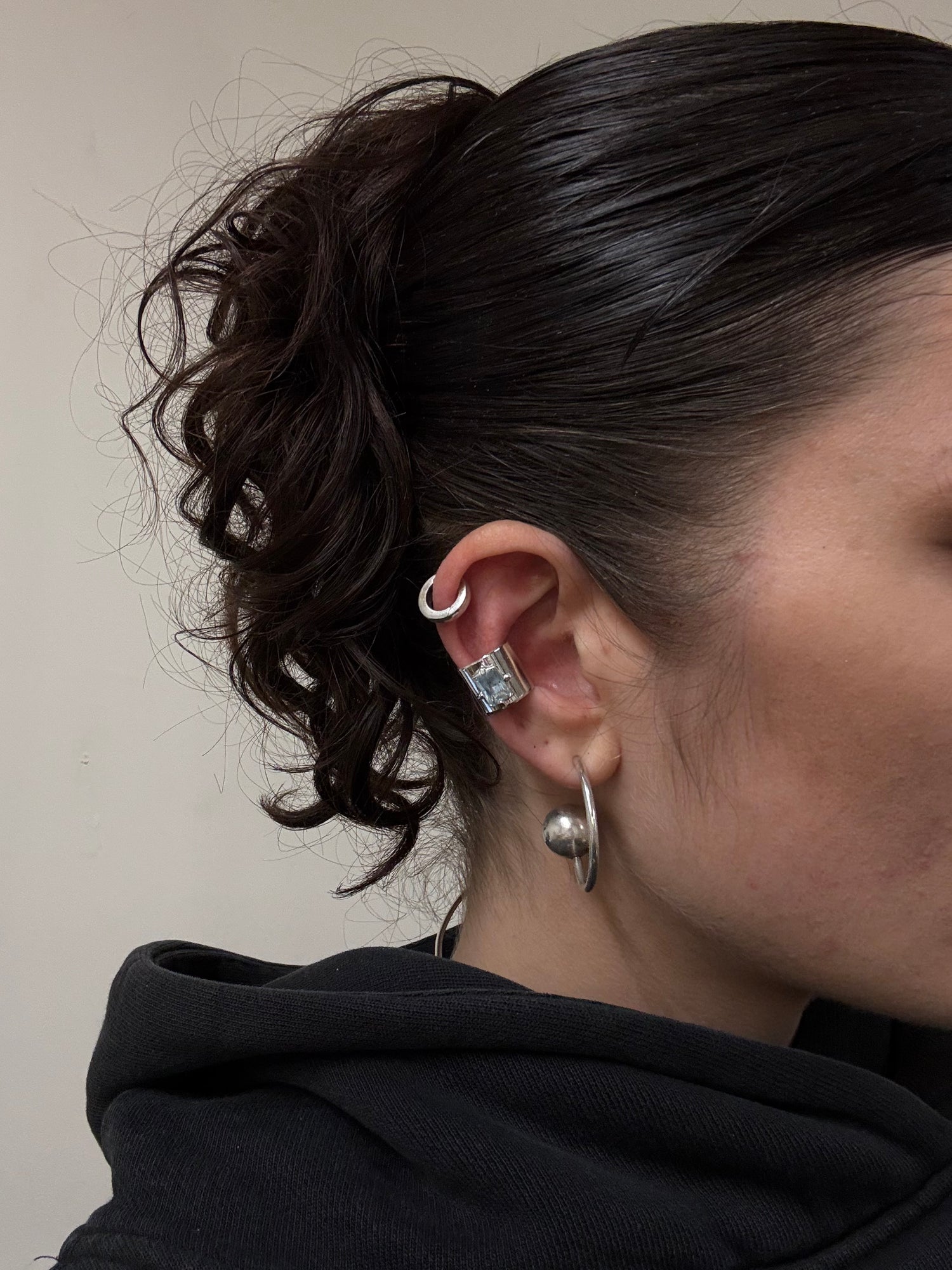 Sterling silver ear cuff with emerald cut gemstone
