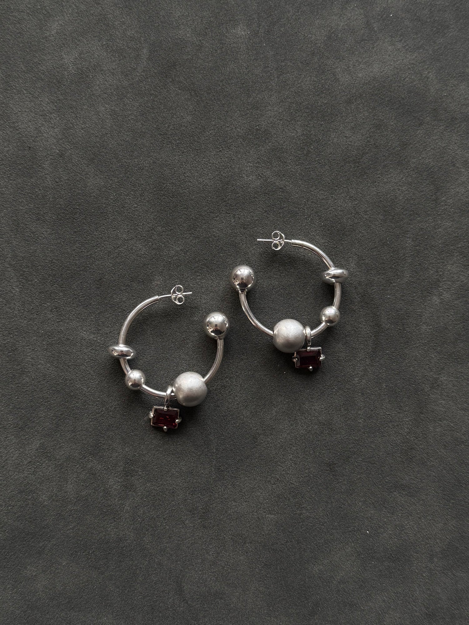 925 sterling silver hoop earrings with changeable silver charms including a baguette cut gemstone