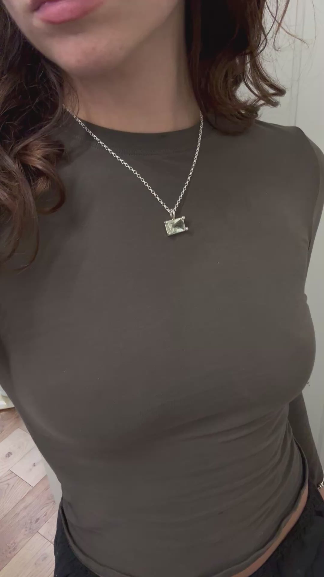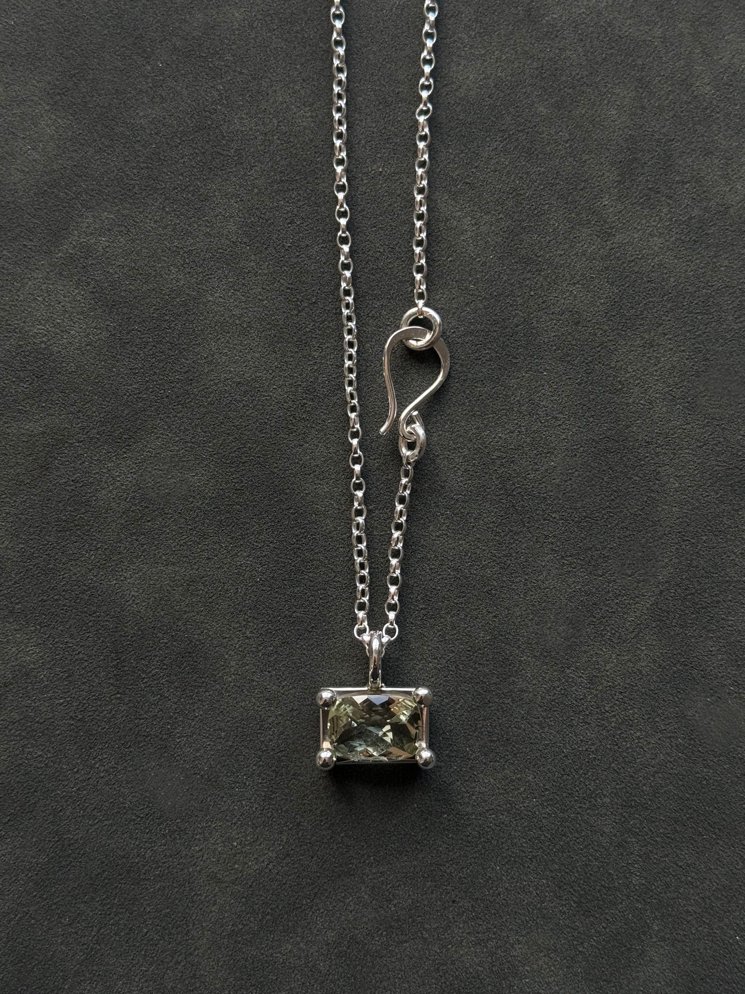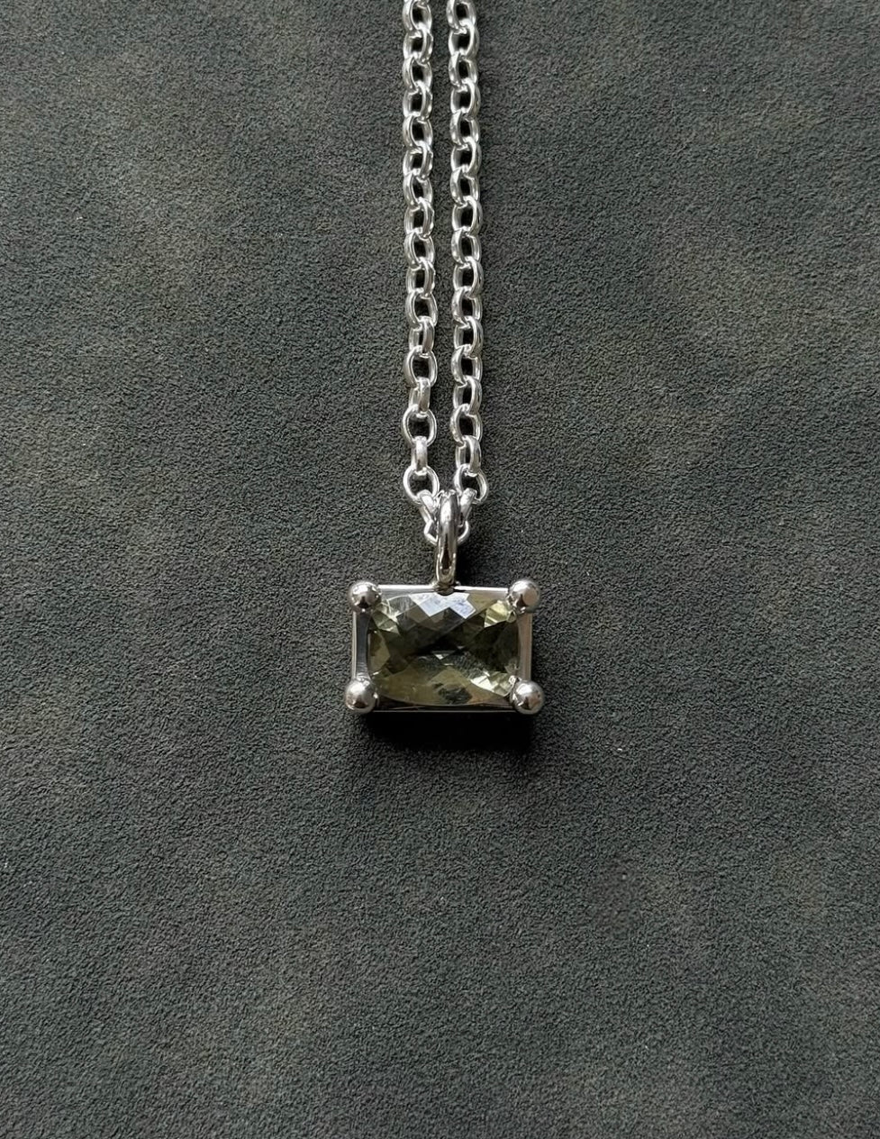 Sterling silver pendant with checkerboard cut green quartz on 16” chain