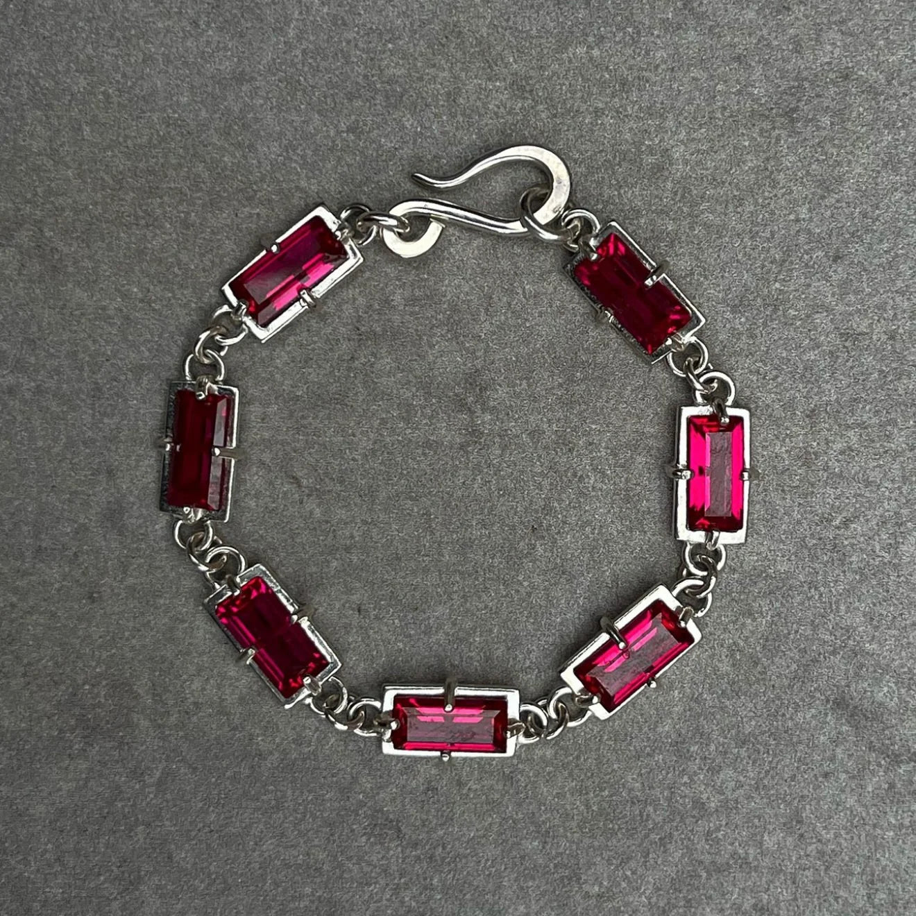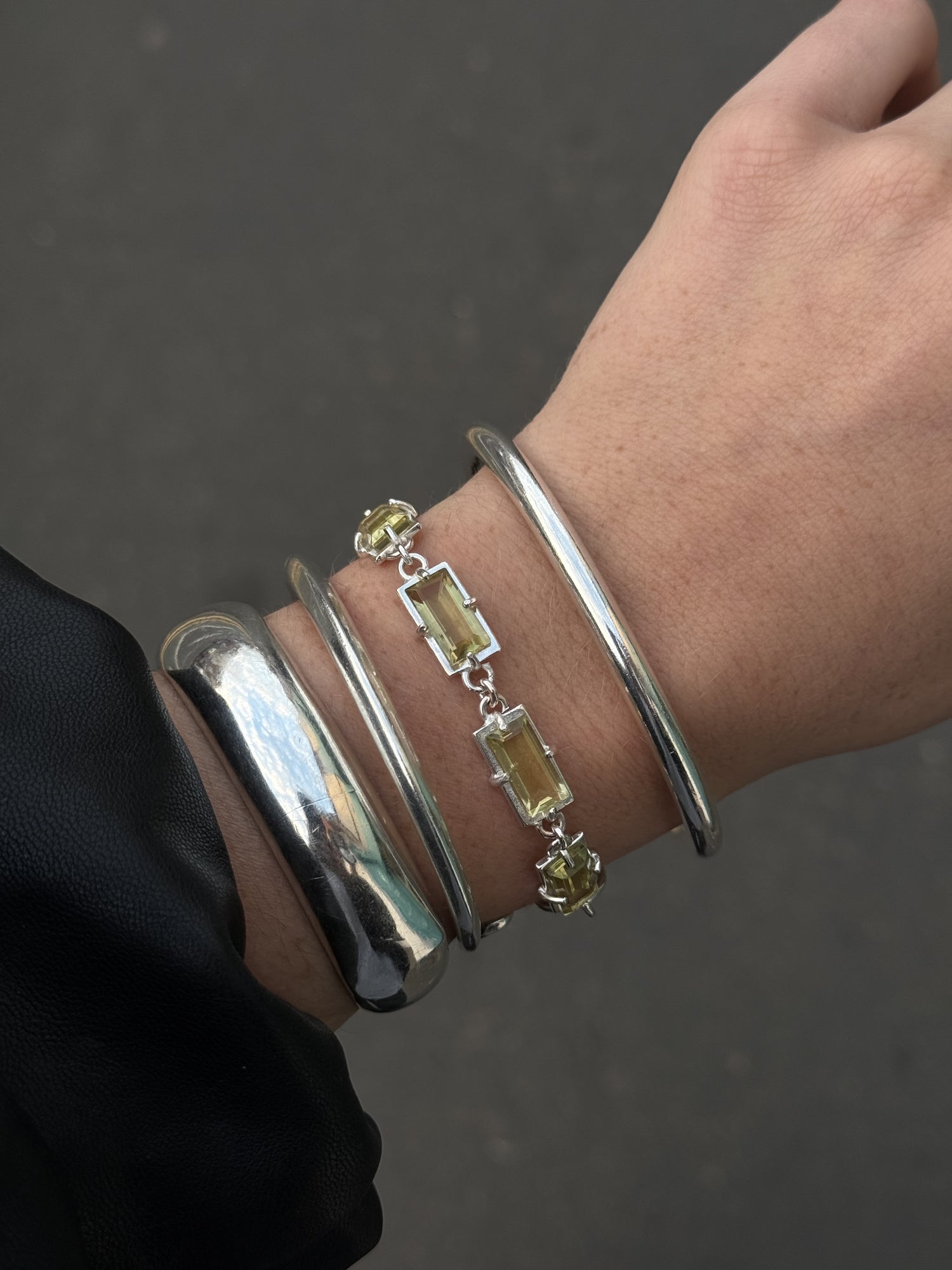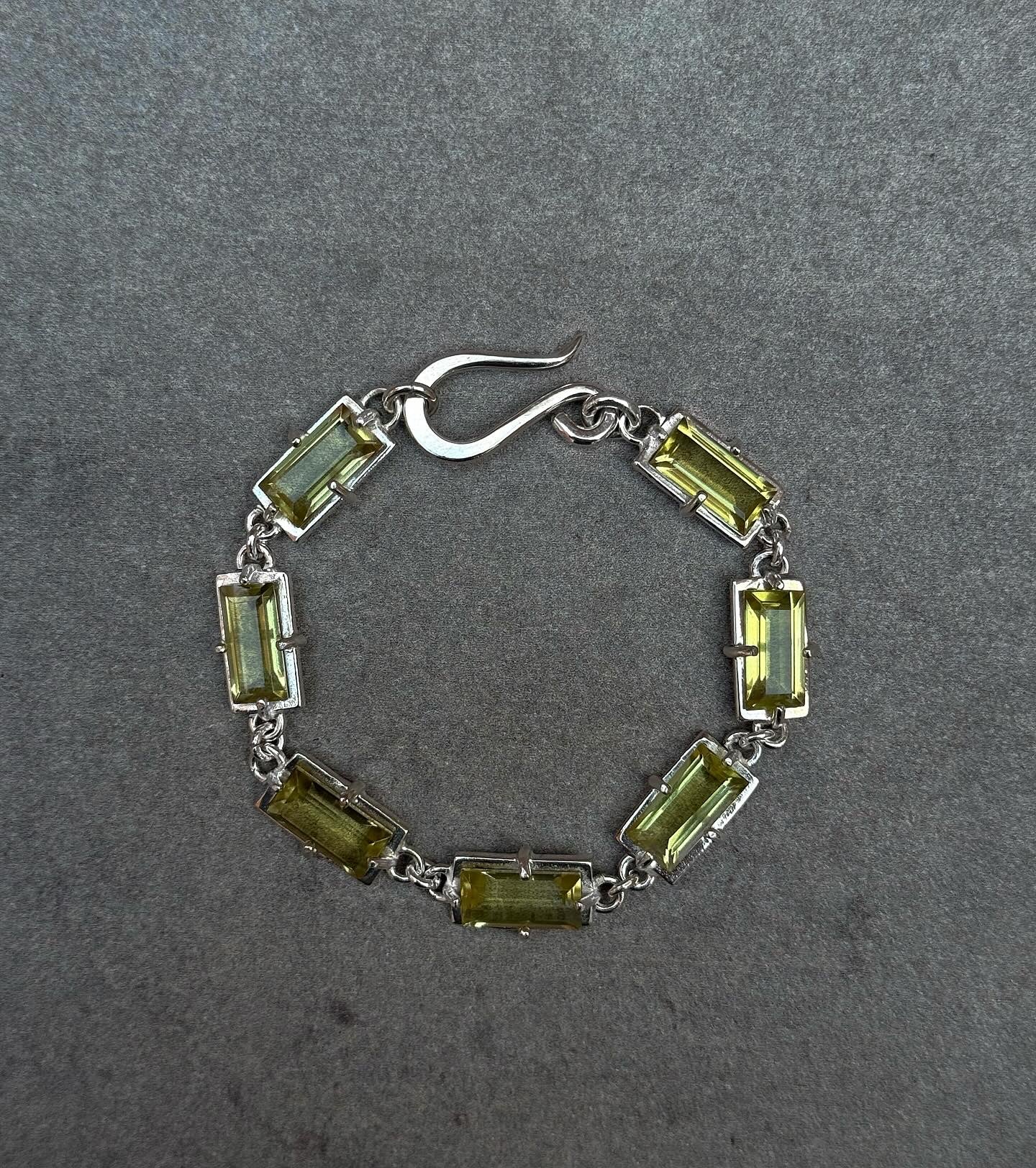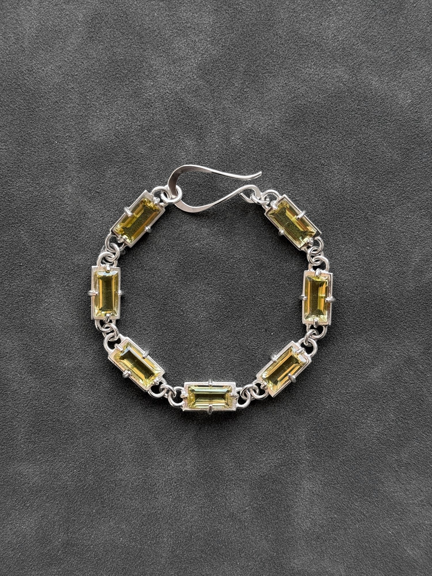 Sterling silver chunky tennis bracelet with baguette cut lemon quartz