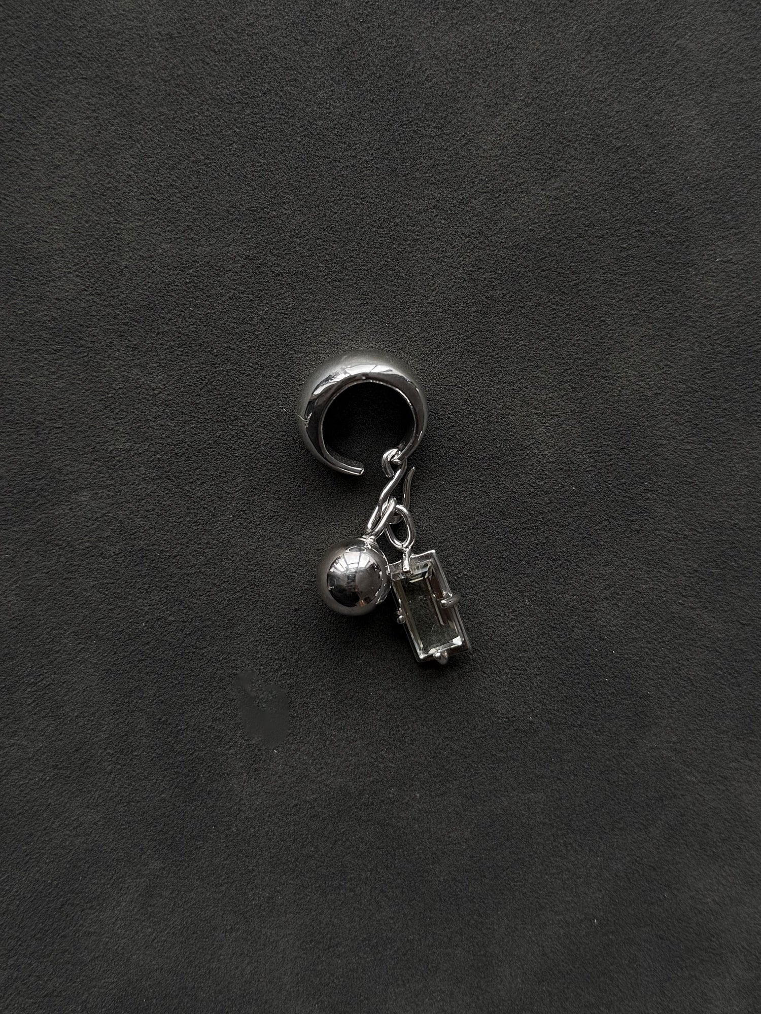 Sterling silver ear cuff with baguette cut natural gemstones and orbs